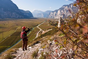 Europa, Italien, Margreid Klettersteiggeher auf dem Klettersteig Fennberg